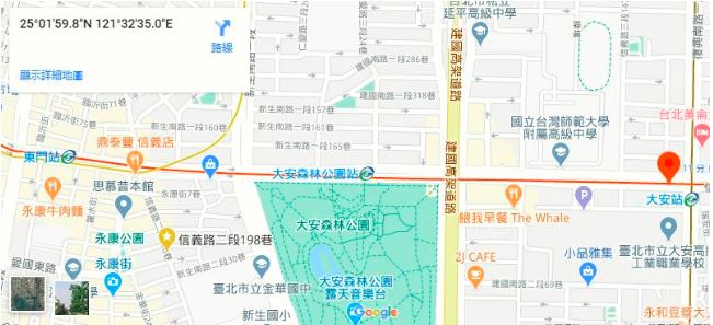 | AdressAdress | 台北市大安區信義路三段3F/Section 3, Xinyi Rd, Daan District, Taipei City |