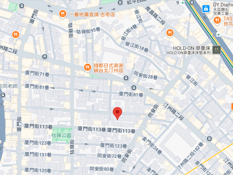 | AdressAdress | 台北市中正區廈門街99巷30號 3F【2号室】/ No.30, Lane99, Xiamen St, Zhongzheng District, Taipei City |