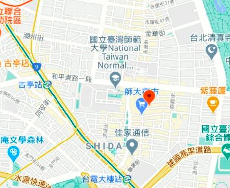 | Near tourist spotNear tourist spot | Shida Night Market, Gongguan Shopping Area, Dongmen Shopping Area etc. |