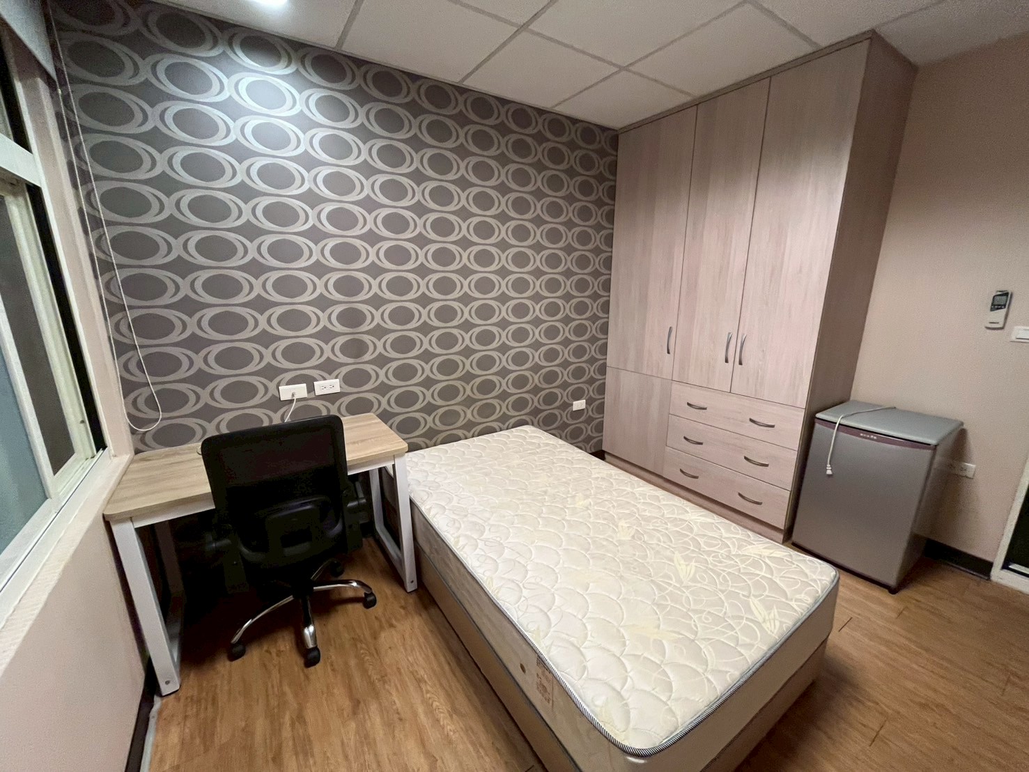 | FacilitiesFacilities | Bed, desk, chair, closet, air conditioner, TV, shared washing machine, shared water purifier |