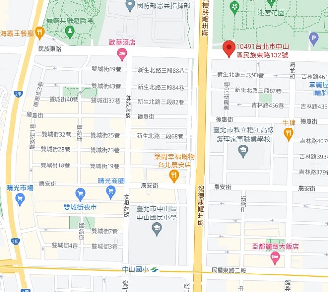 | AdressAdress | 台北市民族東路132號3F(5階建て) / 3F., No. 132, Minzu East Road, Taipei City |